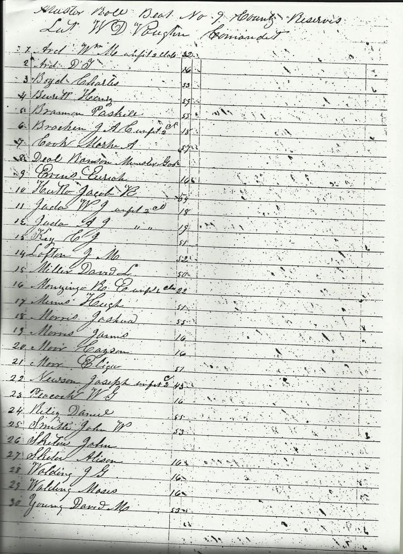 Attached is a Muster Roll Beat No. 9 (Dale) County Reserves Lt. W.D. Vaughn, Commander.