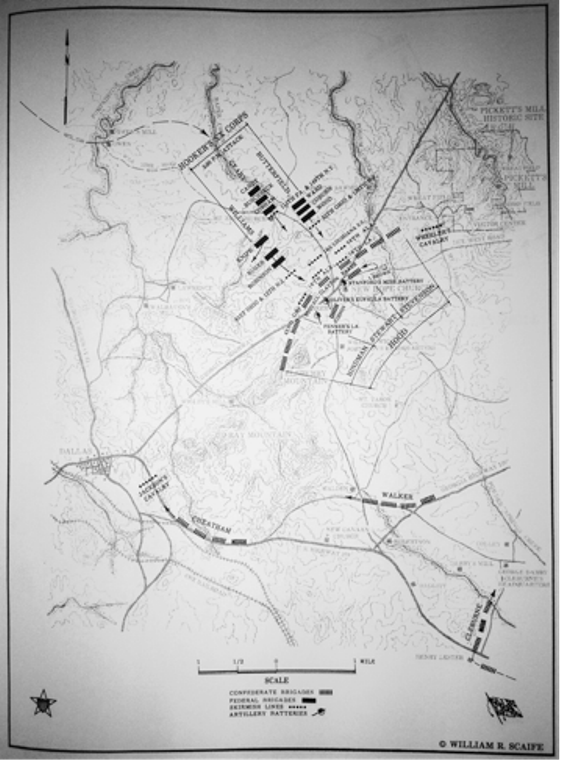 From May 7th to May 17th, Major General Sherman successfully drove his forces southward from Chattanooga towards Atlanta following the path of the Western & Atlantic Rail line. He successfully used turning movements to displace General Johnston's forces from defensive positions at Rocky Face Ridge, Resaca, and Adairsville. On May 19th, Johnston established a highly favorable defensive position at the Allatoona Pass where terrain created an existing obstacle that could not be easily bypassed by a short turning movement. Major General Sherman chose to make a much wider bypass to the west of the railroad and Allatoona Pass in hopes of seizing Dallas to Johnston's rear, and again turn Johnston's forces out of their defensive positions. Once the Confederate forces were forced to withdraw, Sherman could link up with the rail line at Marietta and continue south towards Atlanta. However, elements of Johnston's cavalry reported large portions of Sherman's forces moving to the west, and on May 23rd Johnston ordered Lieutenant General Polk and Lieutenant General Hardee's Corps towards Dallas to defend against Sherman's suspected turning movement, and Lieutenant General Hood's Corps to tie-in on the right flank the following day (Castel, 219). The Battle of New Hope Church served the operational purpose of preventing the Union forces from seizing Dallas in order to prevent the Union forces from bypassing the Confederate defense north of Atlanta.