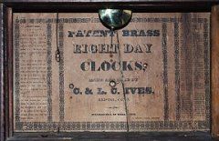 Ives and his nephew Lawson C. Ives in Bristol, Connecticut, sometime between 1833 and 1835. The brass mechanism was the latest patented design by Joseph Ives, master clock maker.